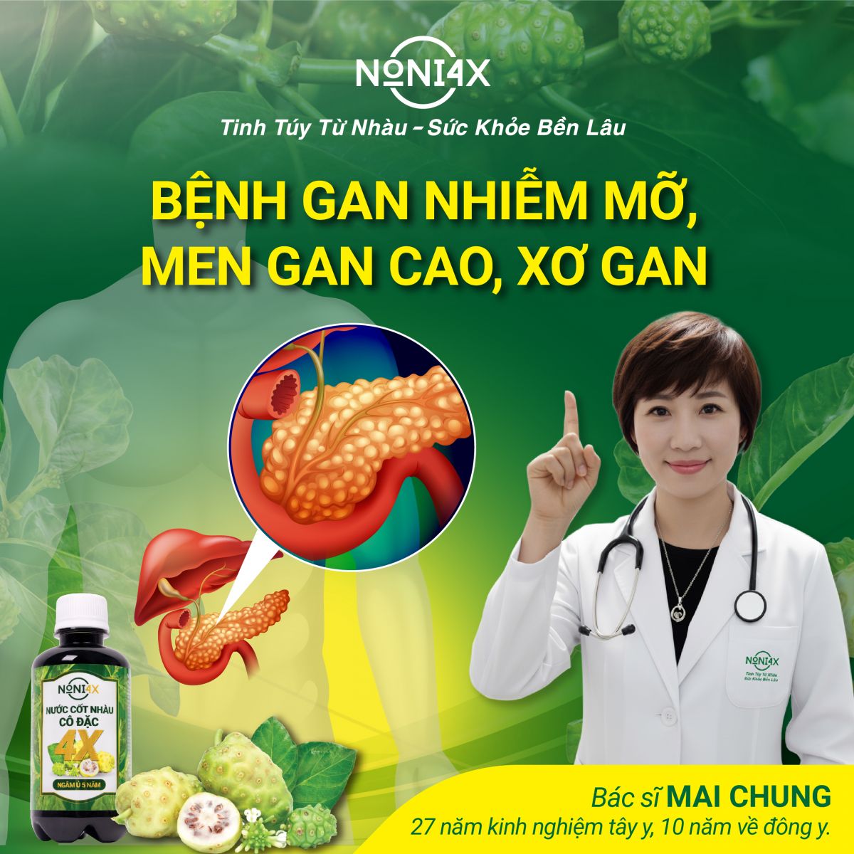 Gan nhiễm mỡ, men gan cao, xơ gan là những bệnh lý gan phổ biến hiện nay. Việc bổ sung nước cốt nhàu cô đặc 4X NONI4X ngâm ủ 5 năm giúp chống oxy hóa, giải độc, tái tạo tế bào gan và bảo vệ chức năng gan.