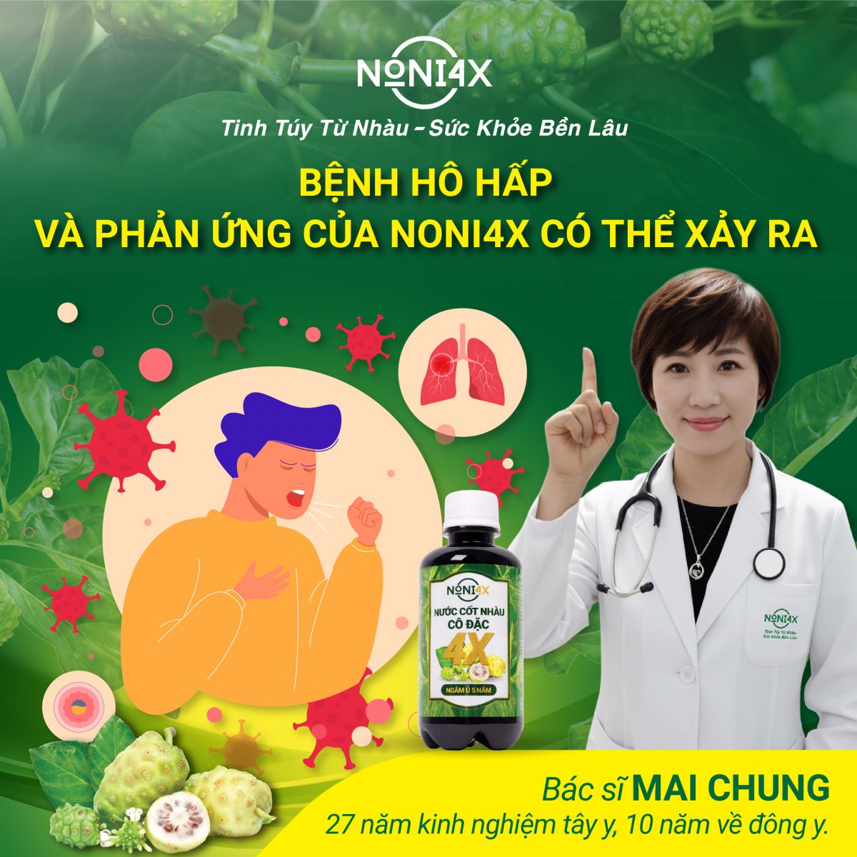Chia sẻ bác sĩ Mai Chung về bệnh HÔ HẤP và phản ứng của nước cốt nhàu cô đặc Noni4x có thể xảy ra