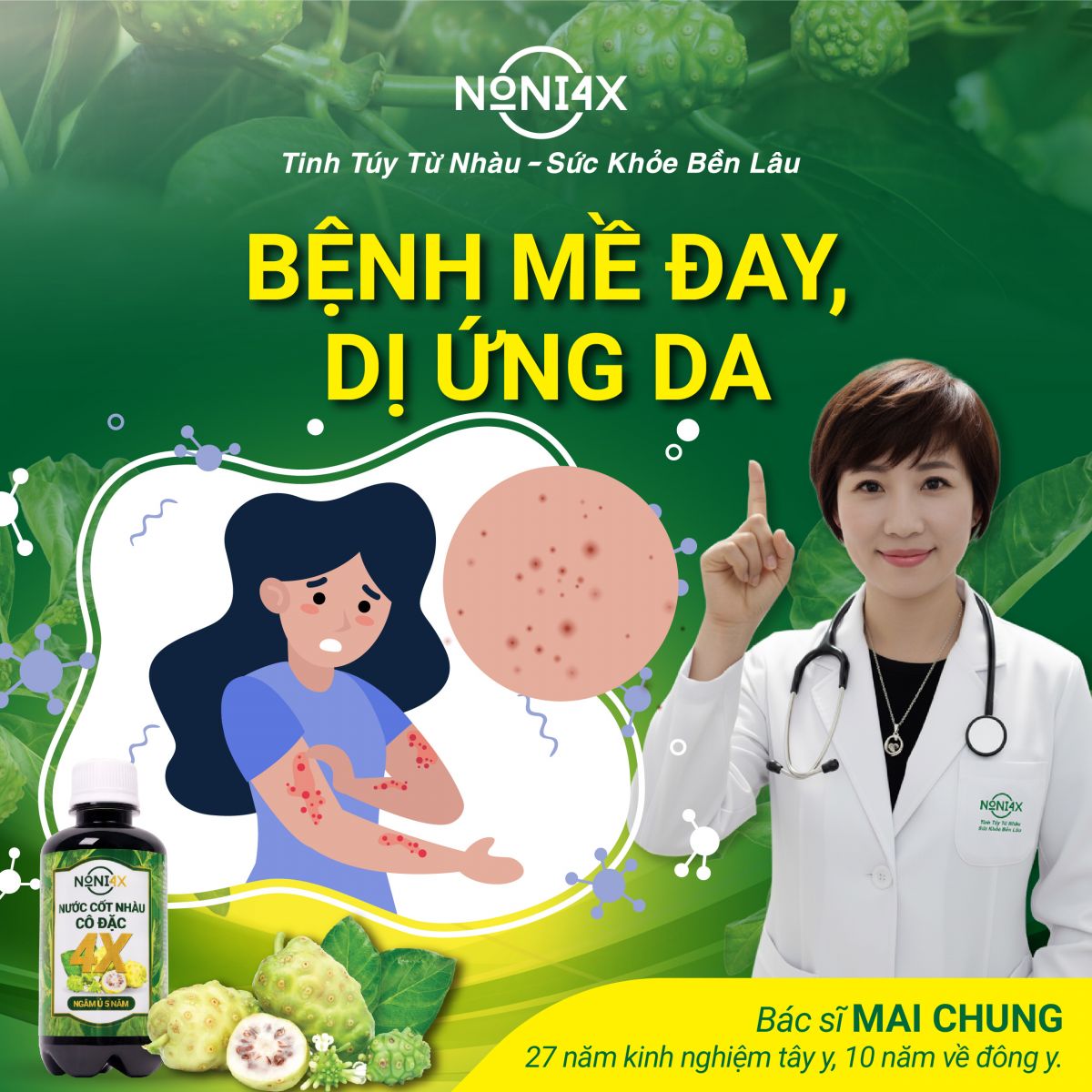 Chia sẻ Bác Sĩ Mai Chung về bệnh mề đay, dị ứng da và phản ứng của nước cốt nhàu cô đặcNoni4x có thể xảy ra